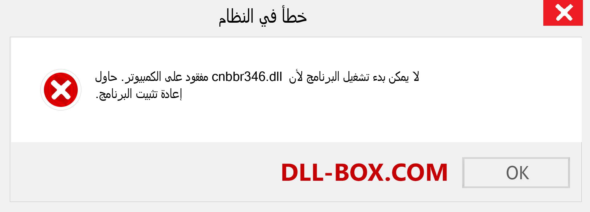 يمكن أن تظهر الأخطاء المتعلقة بـ cnbbr346.dll لعدة أسباب مختلفة. على سبيل المثال ، التطبيق الخاطئ ، cnbbr346.dll تم حذفه أو وضعه في غير مكانه ، أو تلف بسبب البرامج الضارة الموجودة على جهاز الكمبيوتر أو سجل Windows تالف.