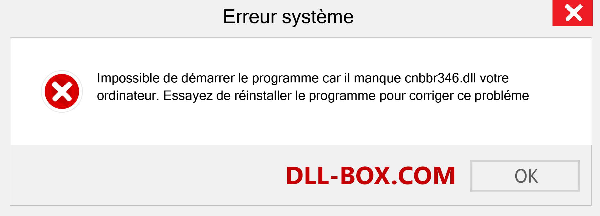 1. Le programme ne peut pas démarrer car cnbbr346.dll est absent de votre ordinateur. Essayez de réinstaller le programme pour résoudre ce problème.